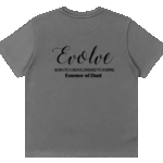 Crafted for Comfort. Built to Last. This tee is made with ultra-premium 270 GSM, 100% cotton, offering a structured fit that still feels soft. Reinforced seam finishing ensures longevity, while the precise placement of the print makes it a standout piece in your everyday rotation. Front Design: (Minimalist front; small logo) To keep the focus on the back, the front is left with a clean subtle look; our brand logo. Perfect for those who like a balance between bold and quiet. Back Design: Evolve with Purpose Bold, elegant, and motivational. This piece features a dynamic contrast of fonts—“Evolve” in flowing script, followed by the powerful tagline: “BORN TO CREATE, DRESSED TO INSPIRE” and grounded by the phrase: “Essence of Dust” It’s more than just a graphic tee, it’s a message. A tribute to growth, identity, and the creative journey. Made for those who wear meaning with intention.